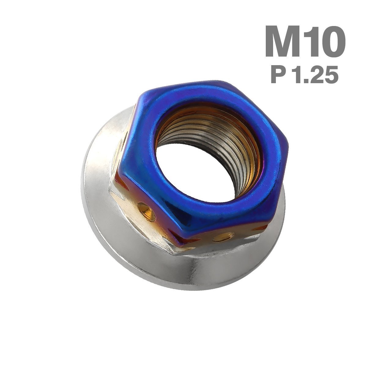 - M10 P1.25 六角ナット フランジ付き ステップホール ステンレス シルバー×ブルー カウル エンジン 車 バイク カスタム 1個 TF0115