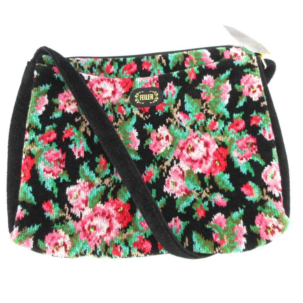 - 未使用品 フェイラー FEILER タグ付き ショルダーバッグ 花柄 シュニール織 ロゴ 黒 ブラック /AE ■GY18 レディース