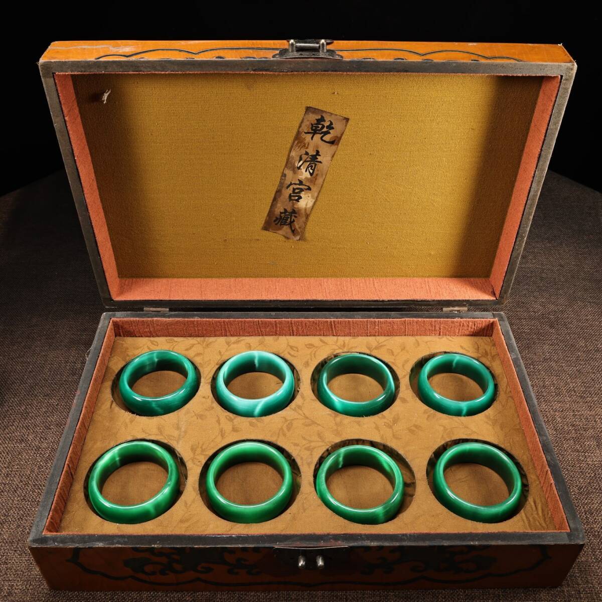 - 【仁】『ネコ眼石細密彫・腕輪・彩繪・神獣紋・漆器箱付・根付・裝身具』極細工 古董品 中国古玩 古美術 古美味 時代物 旧家蔵出