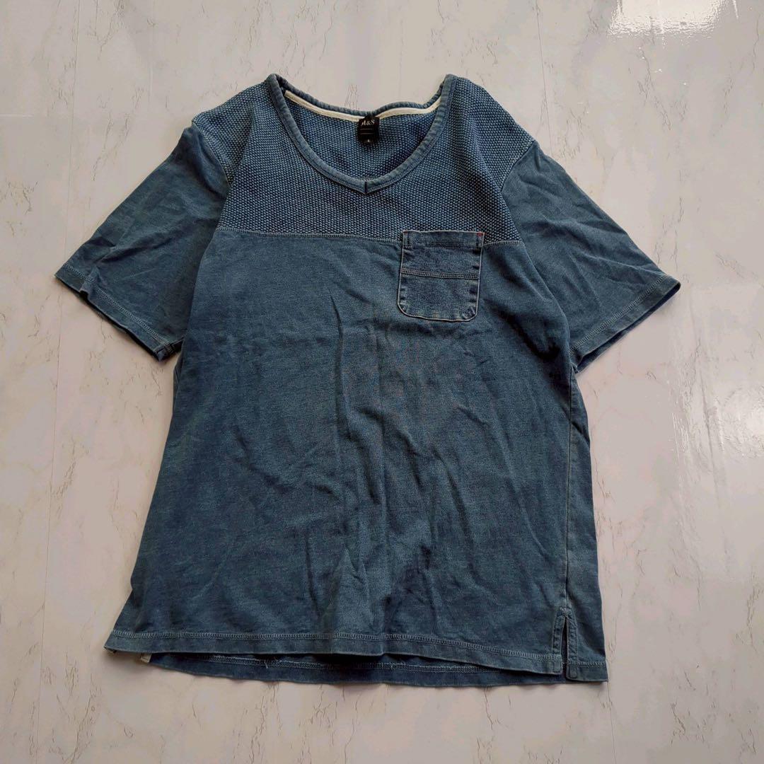 - M&S エムアンドエス デニムカラーTシャツ L 半袖 Vネック メンズ古着