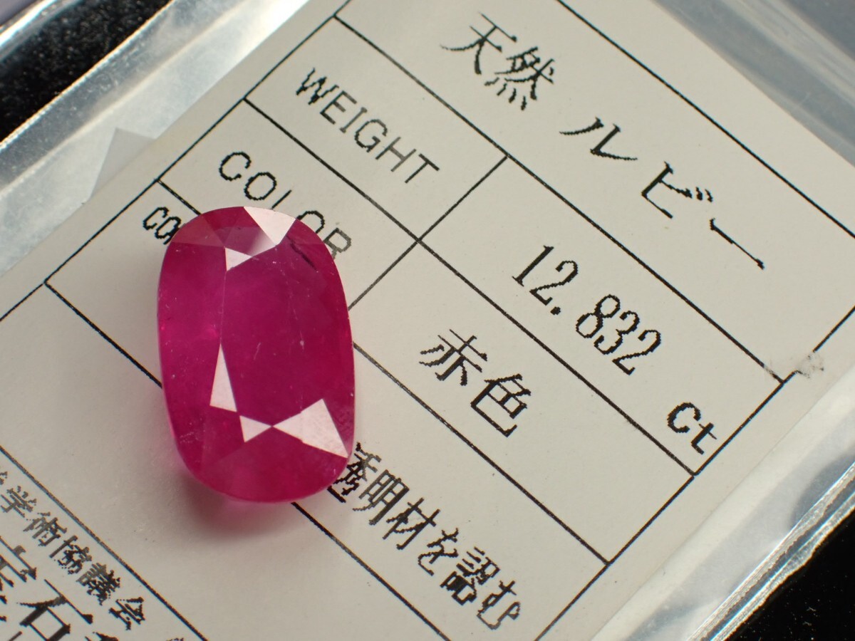 - 大粒天然ルビー ルース 12.832ct 日本宝石科学協会鑑定書ソーティング付き