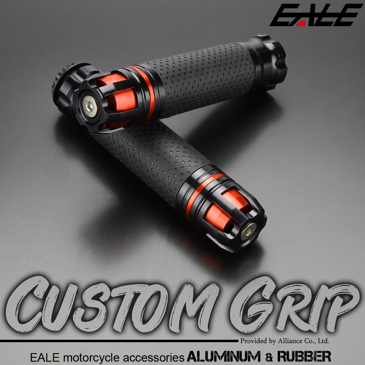 - バイク グリップ ハンドル アルミ ラバー バーエンド付き 22.2mm用 オレンジ 左右セット カスタム ドレスアップ S-577-O