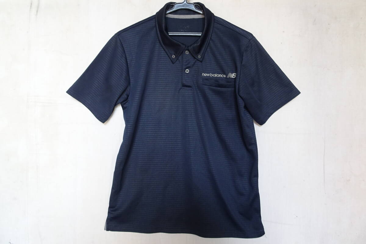 - new balance/ニューバランス/半袖ボタンダウンシャツ/速乾性/密集ドット柄/左胸ポケット/裾サイドスリット/紺/ネイビー/Mサイズ(9/9R7)