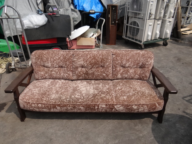 > K0931 茨城県常総市 Karimoku カリモク 3人掛椅子 クラシック アンティーク調 トリプルソファ レトロ 3Pソファ 中古品