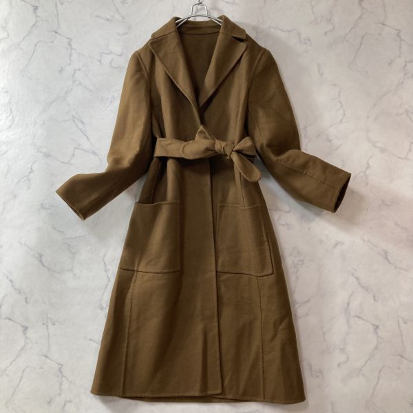 > レディース 美品 アンゴラ混 バレンティノ コート アウター ロングコート ベルト ウール S キャメルブラウン Spa B1343
