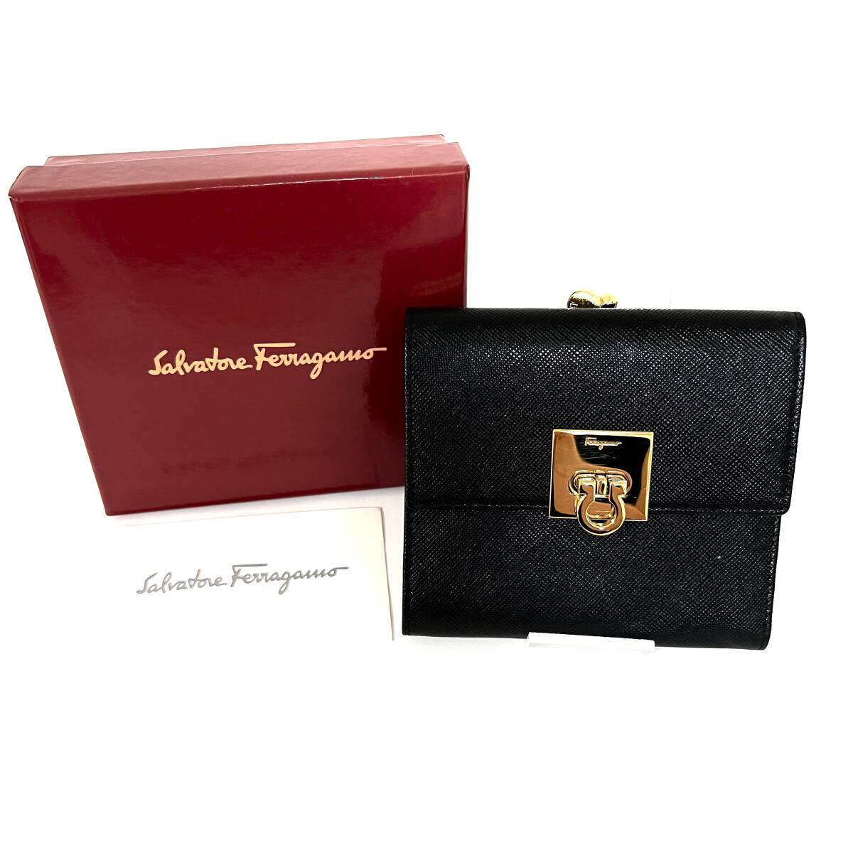 - SD2202 美品! Salvatore Ferragamo サルヴァトーレフェラガモ ガンチーニ ゴールド金具 レザー がま口 三つ折り財布 コンパクトウォレット