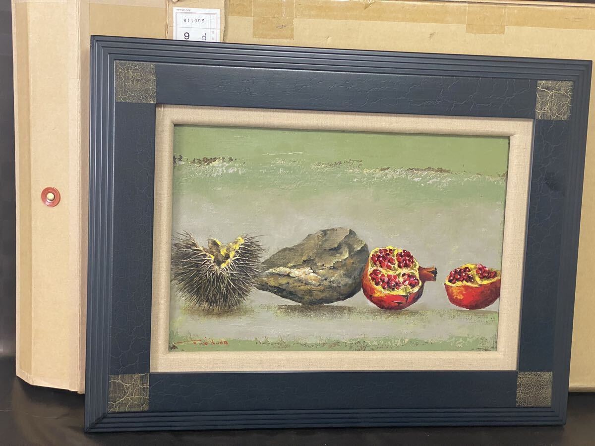 - 真作 油彩画 油絵 奥田敏雄 静物画 P6号 秋の静物 広島県 額縁 額装 インテリア 直筆サイン