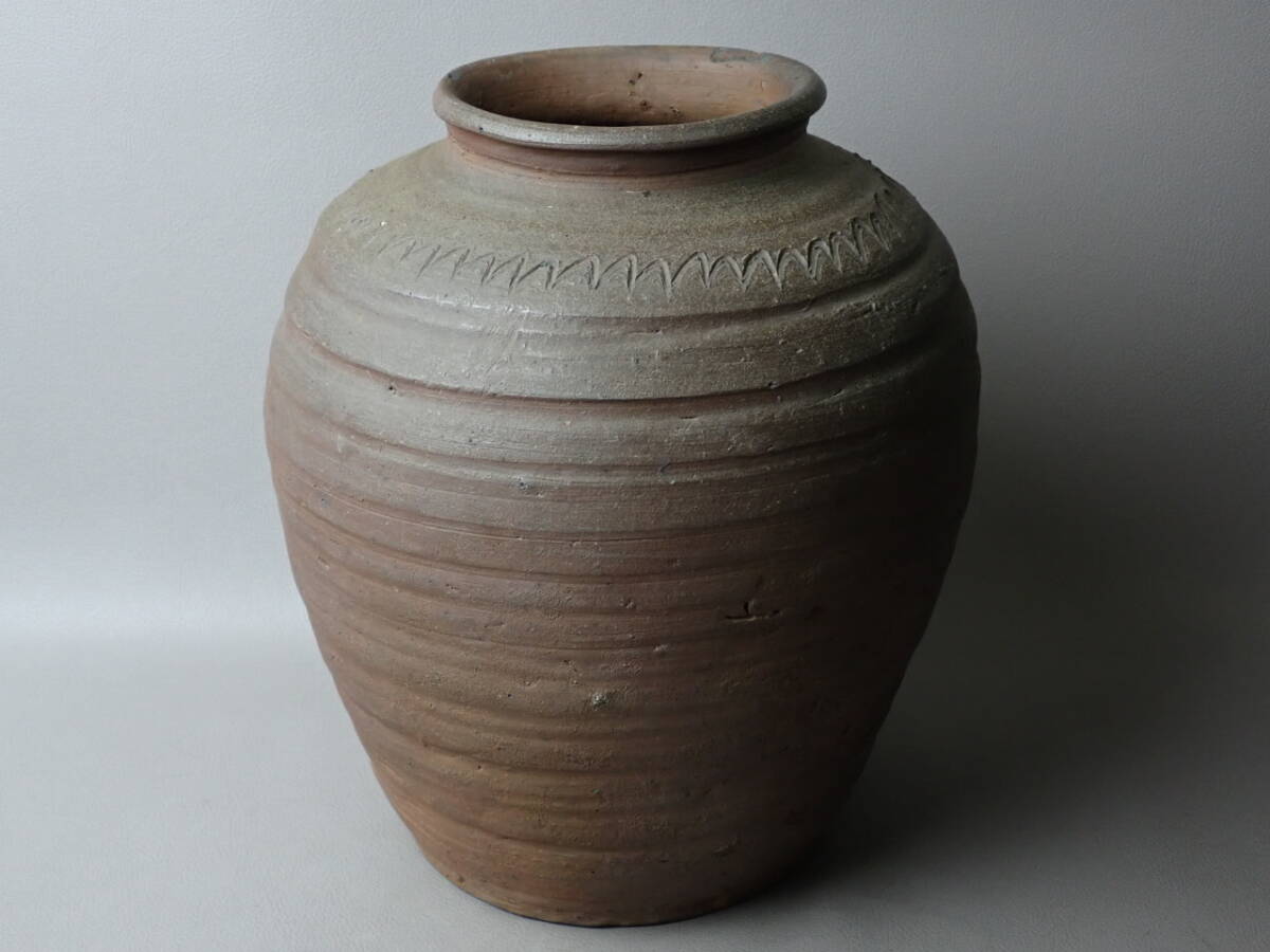 > 【骨董・茶道具】★古い 備前焼 古備前★★自然釉波状文壷 go089vb 黄胡麻 古常滑 古信楽 古丹波 花道 華道 六古窯