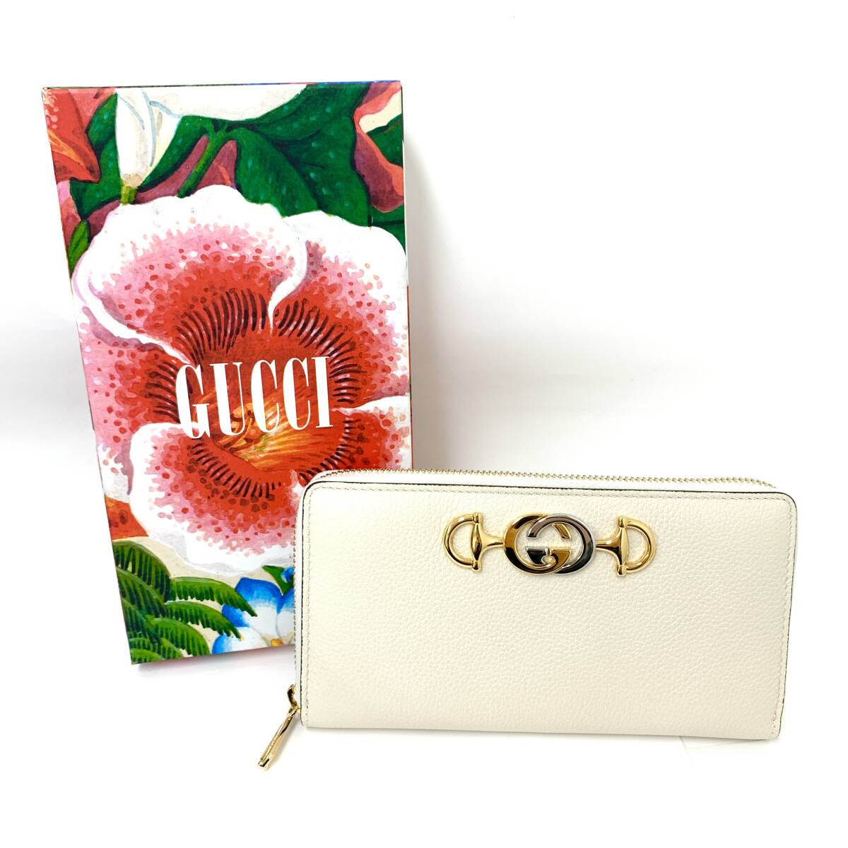 - SD0803 新品未使用! 格安! GUCCI グッチ ズゥミ 570661 ラウンドファスナー 長財布 レザー アイボリー