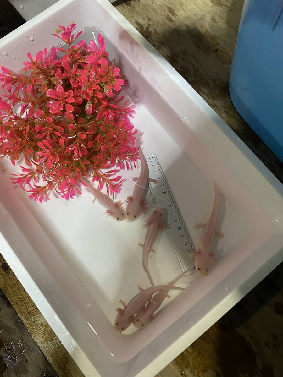 - 5匹 リューシー ウーパールーパー 自家繁殖 ブリード個体 約10センチ前後の個体 メキシコサラマンダー