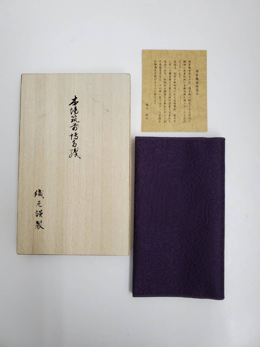 - 【未使用】 本場筑前博多織 金封包み 織元謹製 木箱入り 紫系