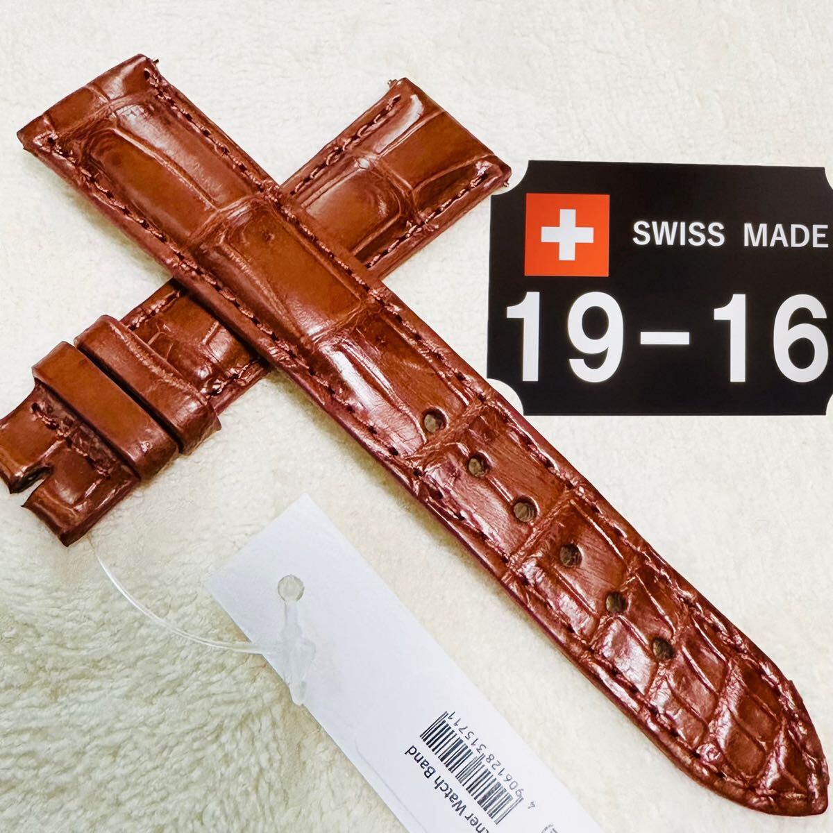 - 2045#19mm-16mmコニャック★本物クロコダイル腕時計用ベルト★スイス製