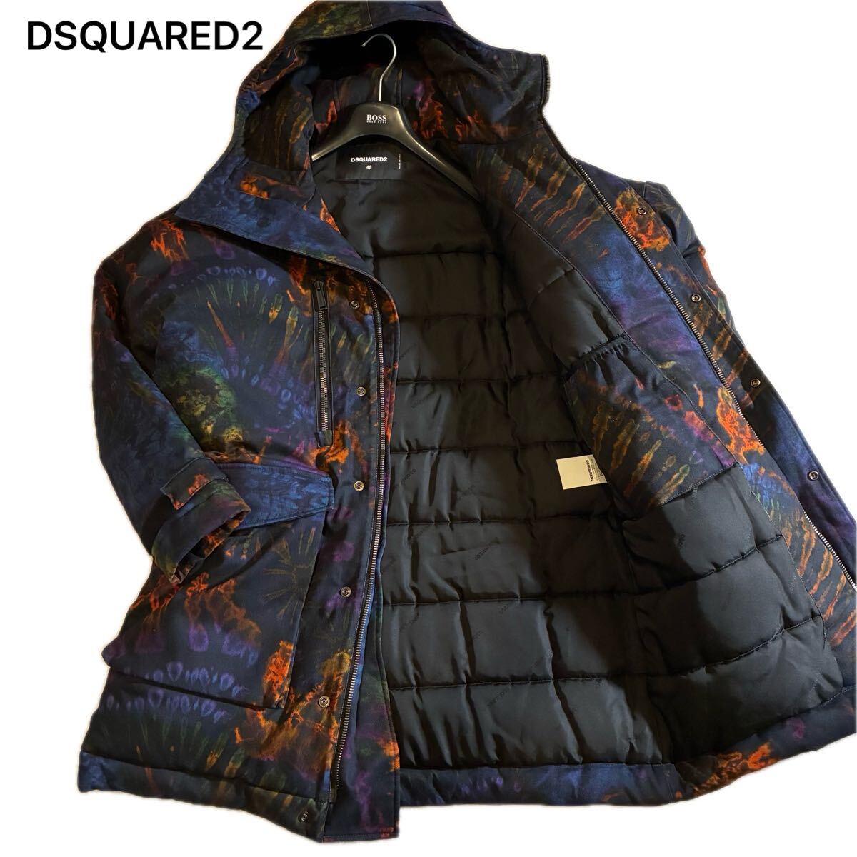 - 【美品・XL相当】DSQUARED2 ディースクエアード 中綿コート 豪華絢爛 総柄 マルチカラー メンズ 48 イタリア製 アウター ロング ジャケット