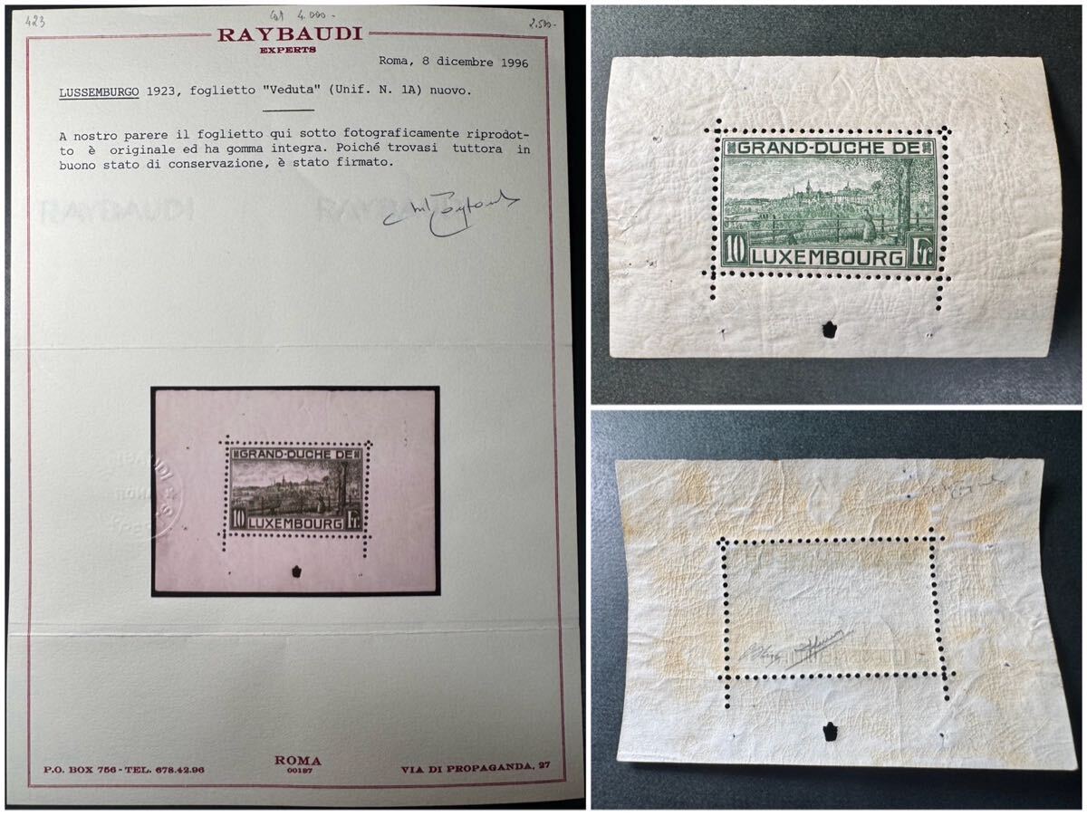 - 購入294,000円 ルクセンブルク 世界最初 小型シート 1923年 発行 鑑定書 切手 海外 世界 外国 希少 西ヨーロッパ