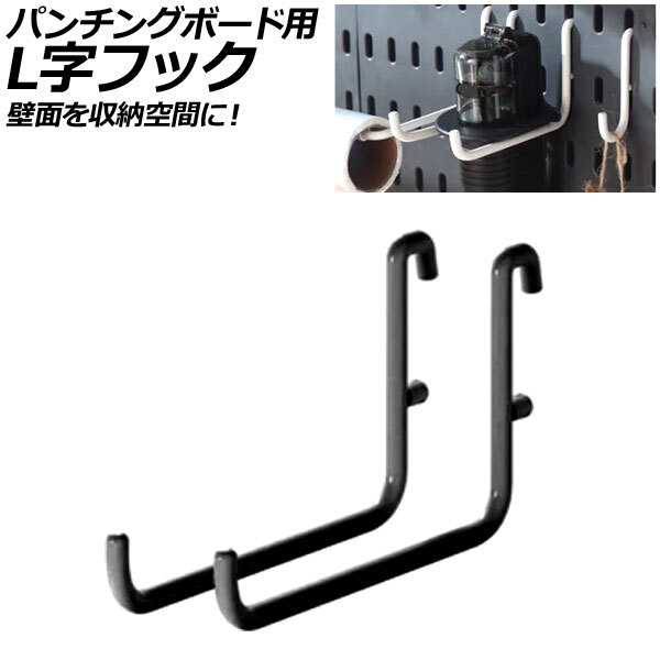 - パンチングボード用 L字フック ブラック プラスチック製 壁面を収納空間に!ボードの穴に差し込むだけの簡単取付け