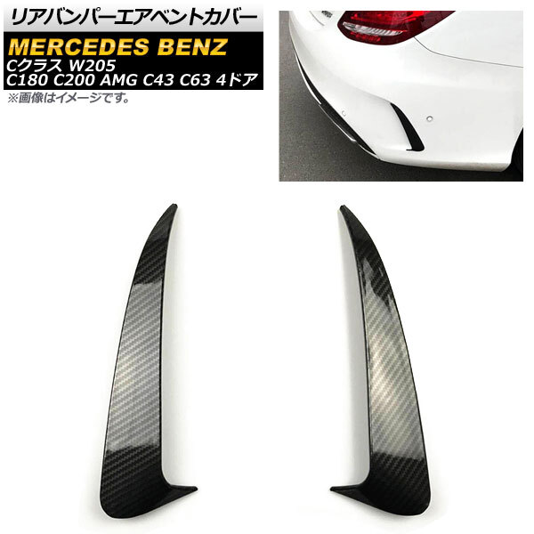 - リアバンパーエアベントカバー メルセデス・ベンツ Cクラス W205 C180 C200 AMG C43 C63 4ドア 2014年07月~ ブラックカーボン ABS製