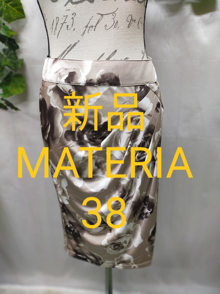 - 新品タグ付 2,4万 マテリア スカート 38 M ポリスムース花柄 ブラウン