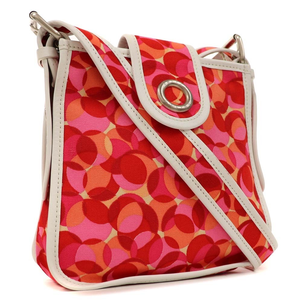 > セリーヌ ショルダーバッグ レディース キャンバス レザー レッド ピンク 中古 送料無料 CELINE