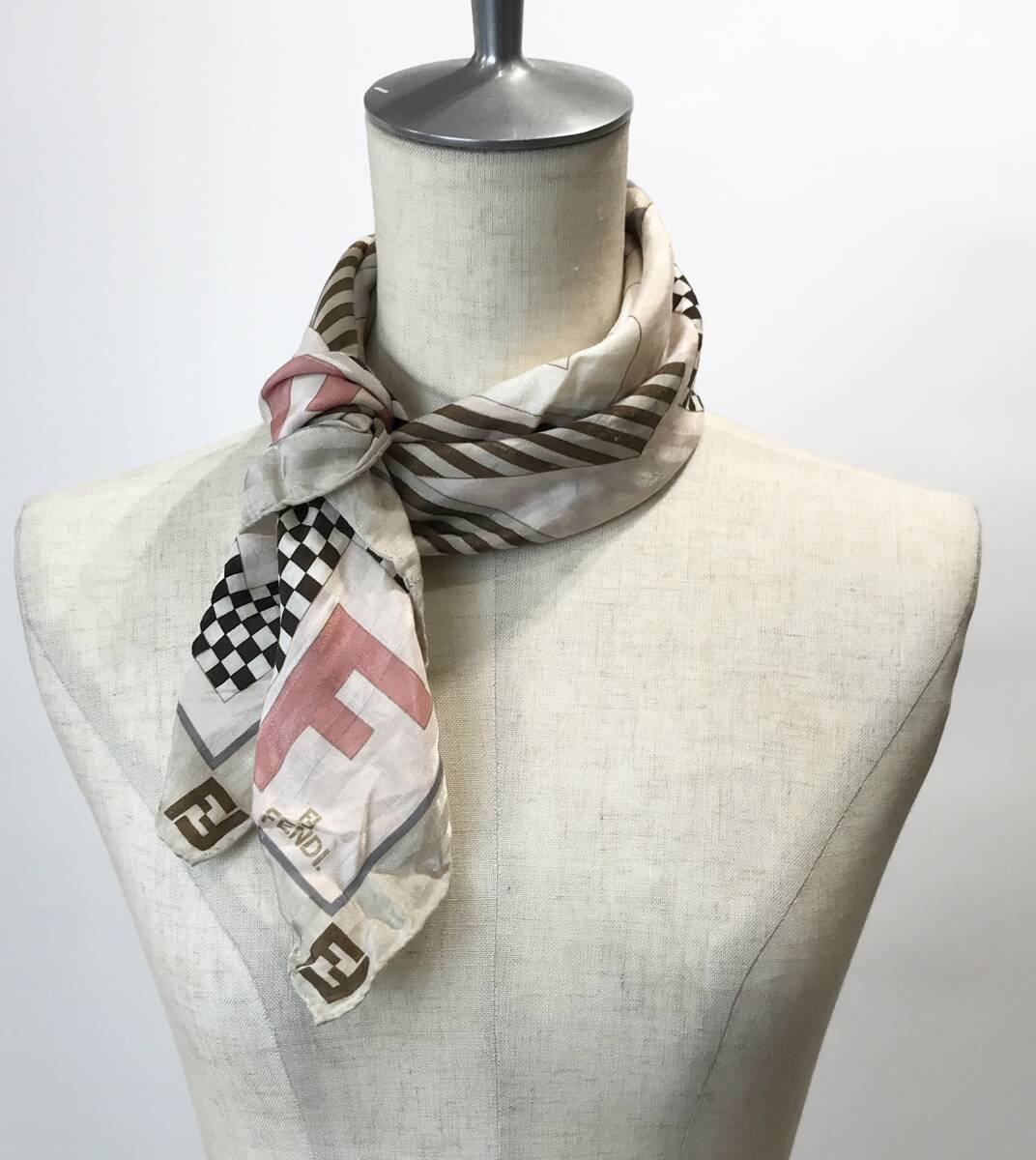 - FENDI ロゴ総柄 スカーフ チーフ ピンク×ベージュ フェンディ■0909Y