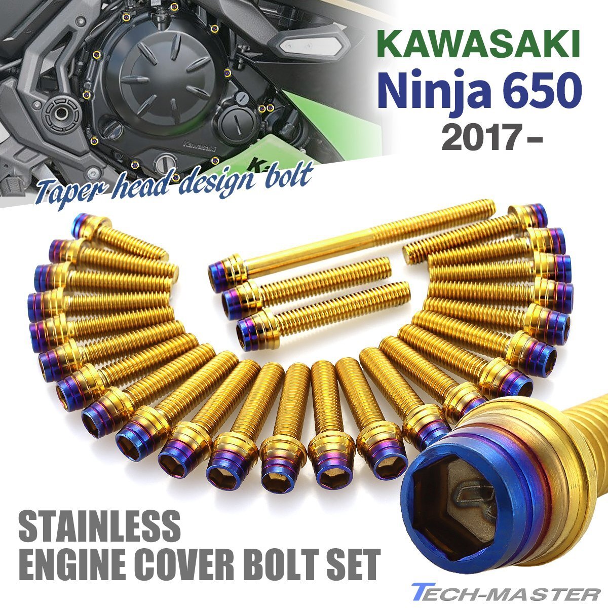 > ニンジャ650 2017年~ Ninja エンジンカバー クランクケース ボルト 26本セット ステンレス製 ゴールド×焼きチタンカラー TB8657