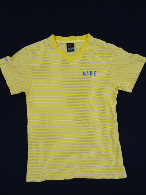 > NIKE ナイキ Tシャツ カットソー イエローボーダー レディース トップス 春夏 USED 古着 Mサイズ 150