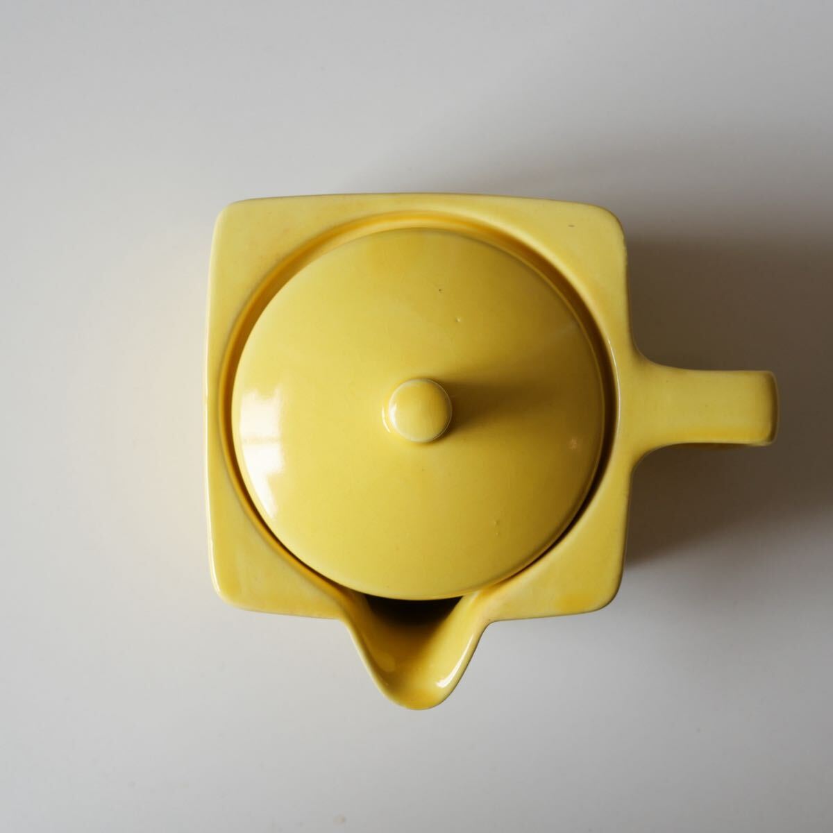 - 80s 四角急須 茶器陶器レトロポップビンテージポストモダンオブジェ古道具