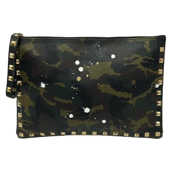 > ジャンティバンティ GENTIL BANDIT クラッチバッグ - レザー カーキ×ダークグリーン×マルチ スタッズ/迷彩柄/ペイント加工 美品 バッグ