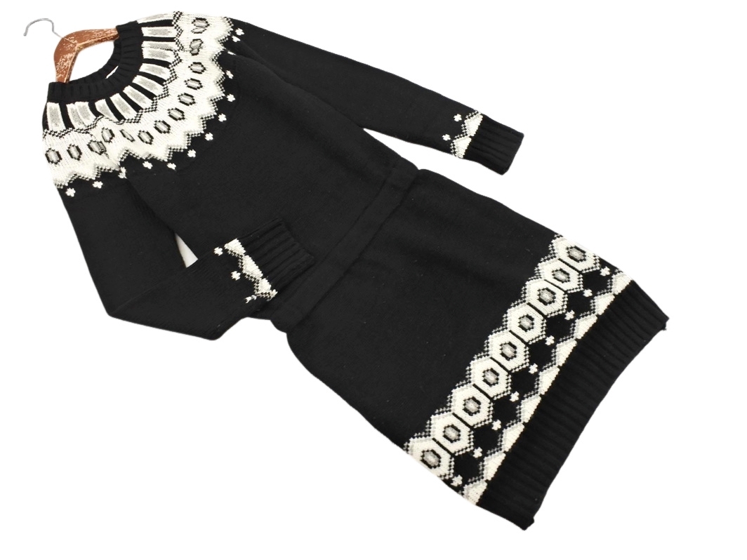 - EGOIST エゴイスト フェアアイル柄 ギャザー ニット ワンピース 黒 ◇■ ☆ fib0 レディース