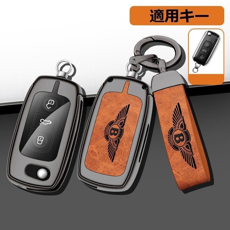 - ベントレー Bentley スマートキーケース キーカバー TPU キーホルダー 車専用 傷 防止 鍵を保護 ☆B番☆深錆色/オレンジ