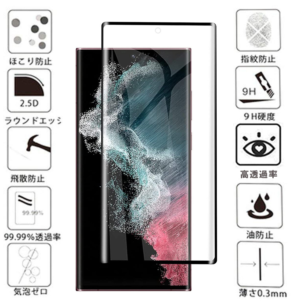- 黒 2枚入り Galaxy S22 Ultra ガラス フィルム 保護 SCG14 SC-52CC カバー シール シート スクリーン ギャラクシー ウルトラ サムセン