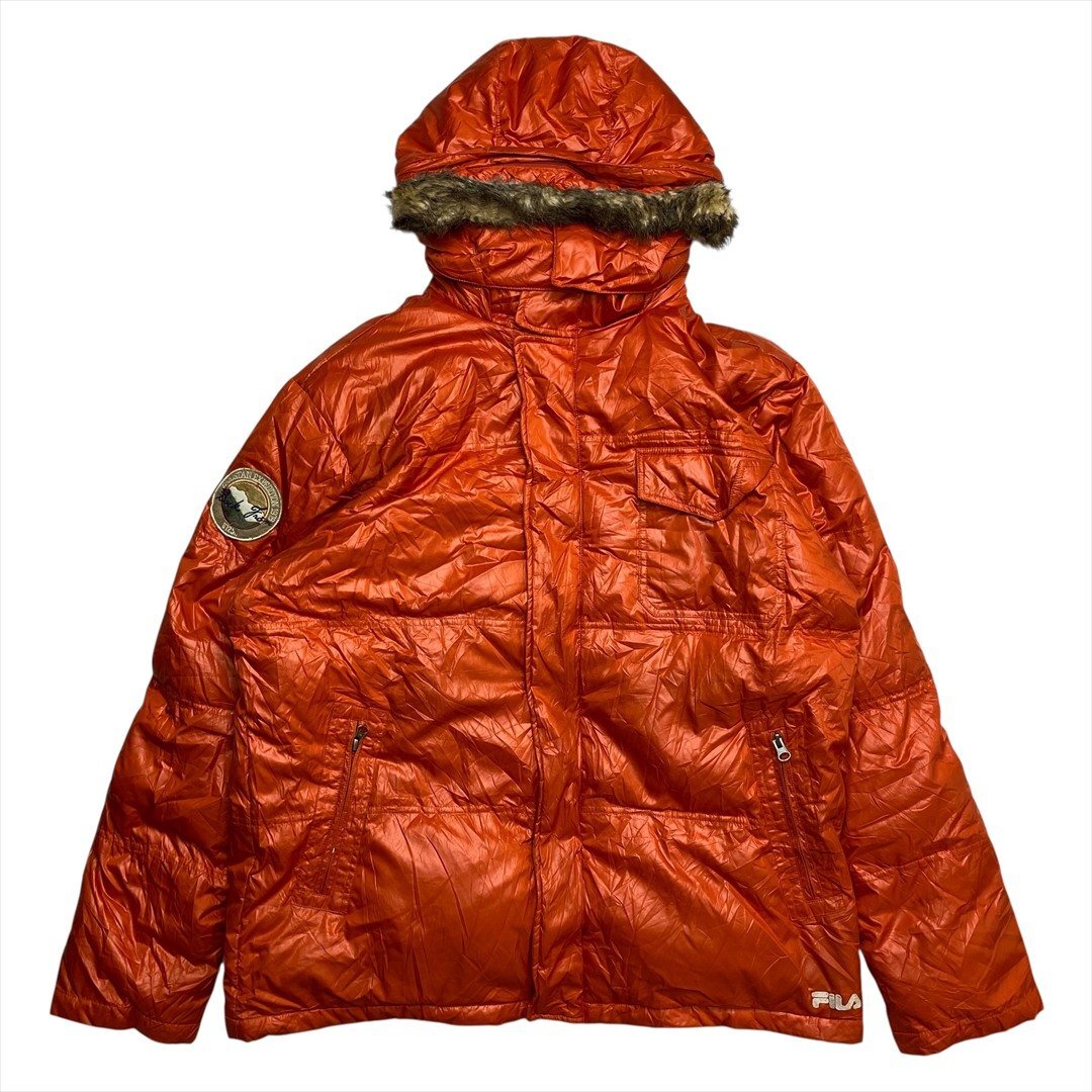 - Vintage FILA フィラ ファー フーディ ダウン パーカー メンズ L オレンジ 古着 フード パファー ビンテージ ヴィンテージ
