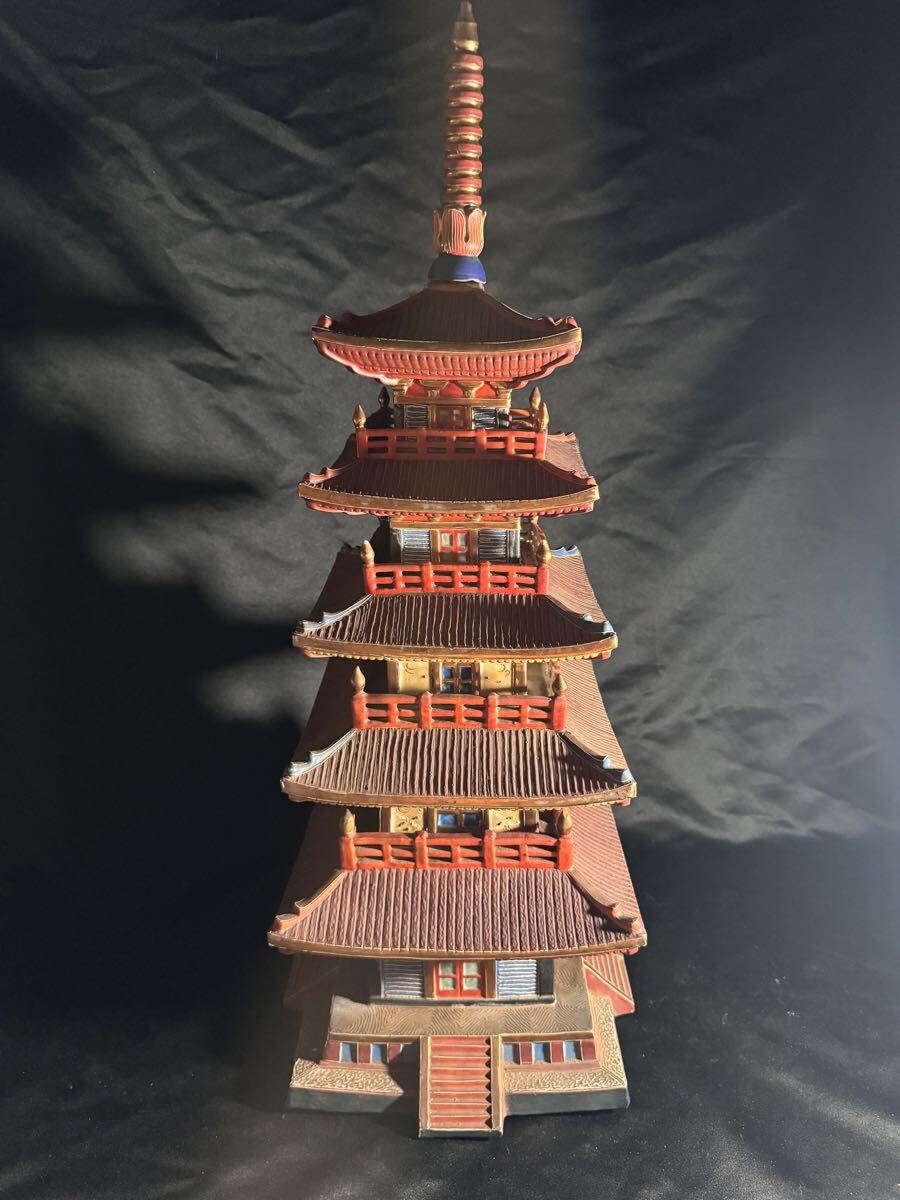 - 古美術品 九谷焼 五重塔置物 約75.5cm 細密細工 時代古玩 置物 オブジェ 特大
