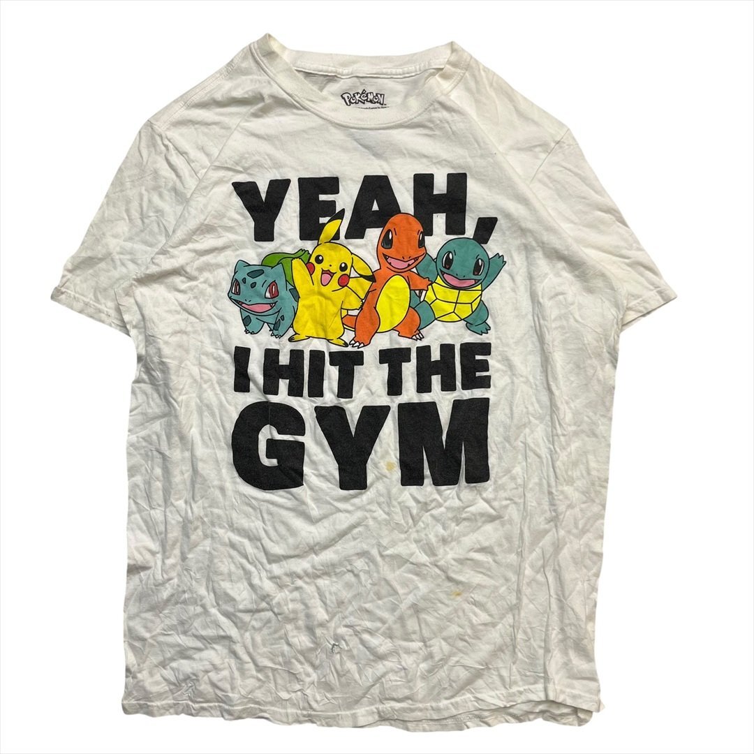 > Vintage Pokemon YEAH, I HIT THE GYM ロゴ ポケモン キャラ Tシャツ 半袖 メンズ L ホワイト 古着 ポケットモンスター ヴィンテージ