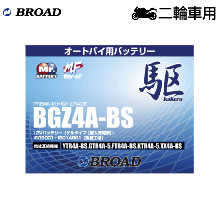 - ブロード 駆 BGZ4A-BS オートバイ用・ゲルバッテリー BROAD カケル
