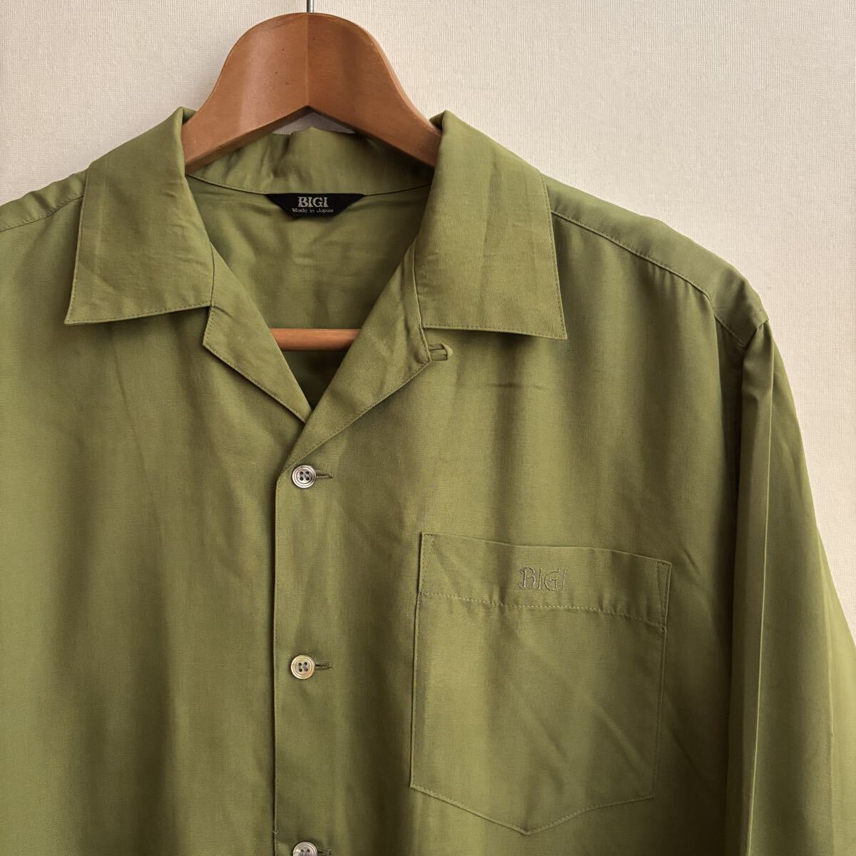 > ヴィンテージ 80s【BIGI】開襟シャツ 古着 50s 無地 レーヨンシャツ アメカジ モード 褪せ フェード 長袖 ギャバシャツ オンブレ 日本製