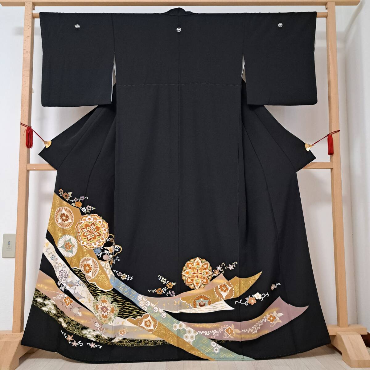 - 即決■着物の越田■裄69身丈167.5 正絹 黒留 比翼有り フォーマル 結婚式 裄長 ゆったりサイズ 唐花 C ◇む09R01
