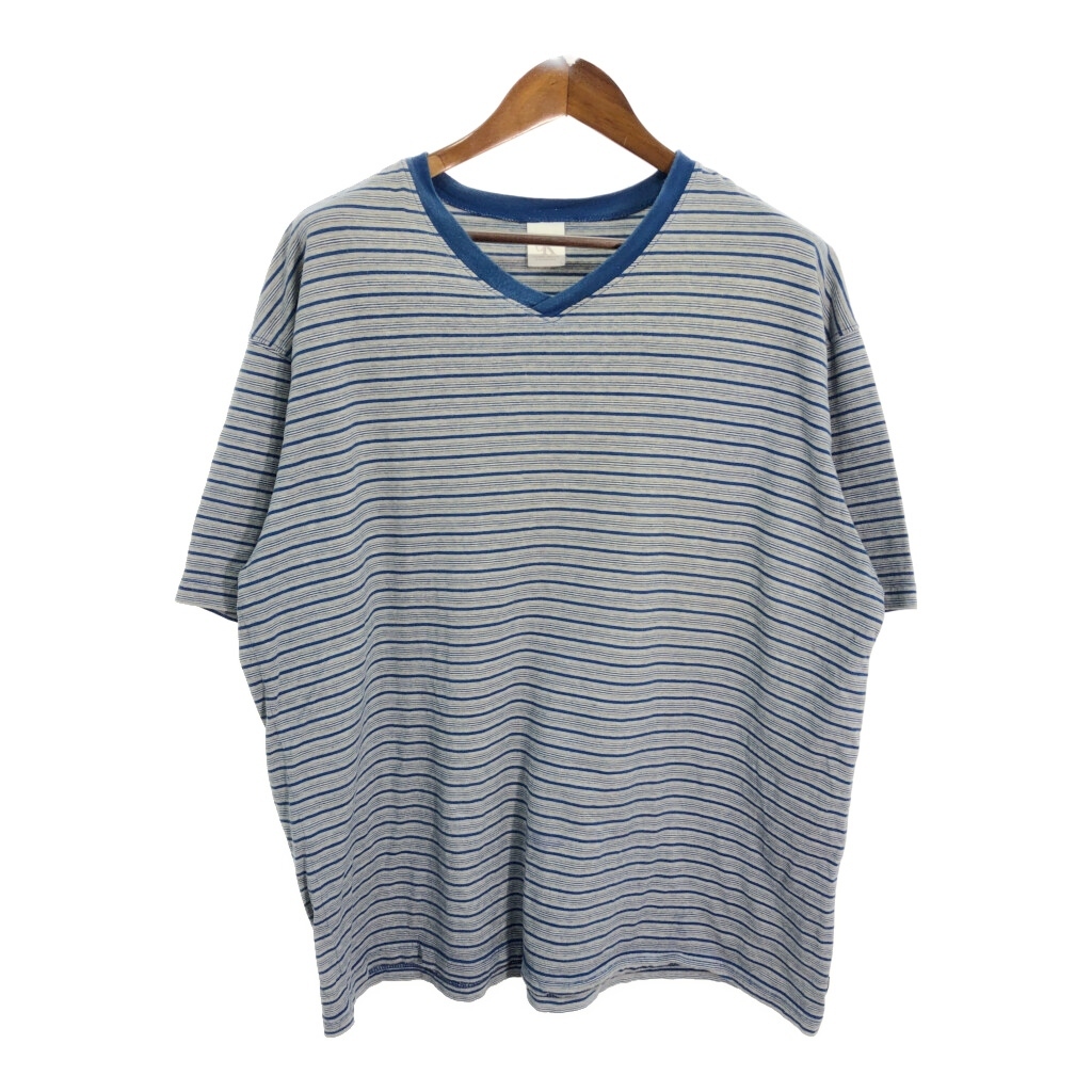 > Calvin klein カルバンクライン Vネック ボーダー 半袖Tシャツブルー (メンズ XL) 中古 古着 R0569