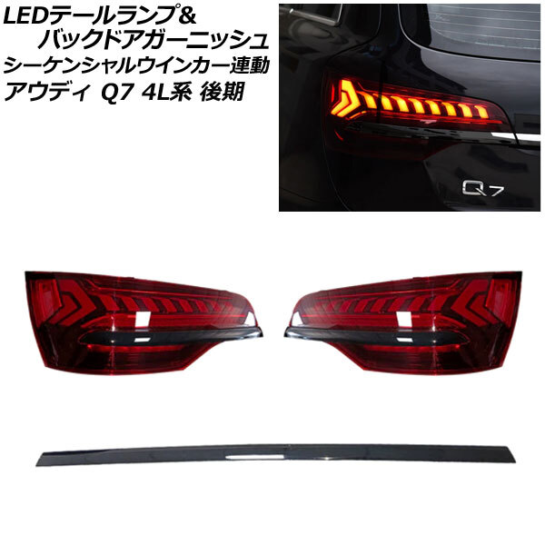 > LEDテールランプ&バックドアガーニッシュ アウディ Q7 4L系 2009年09月~2013年09月 ブラック シーケンシャルウインカー連動