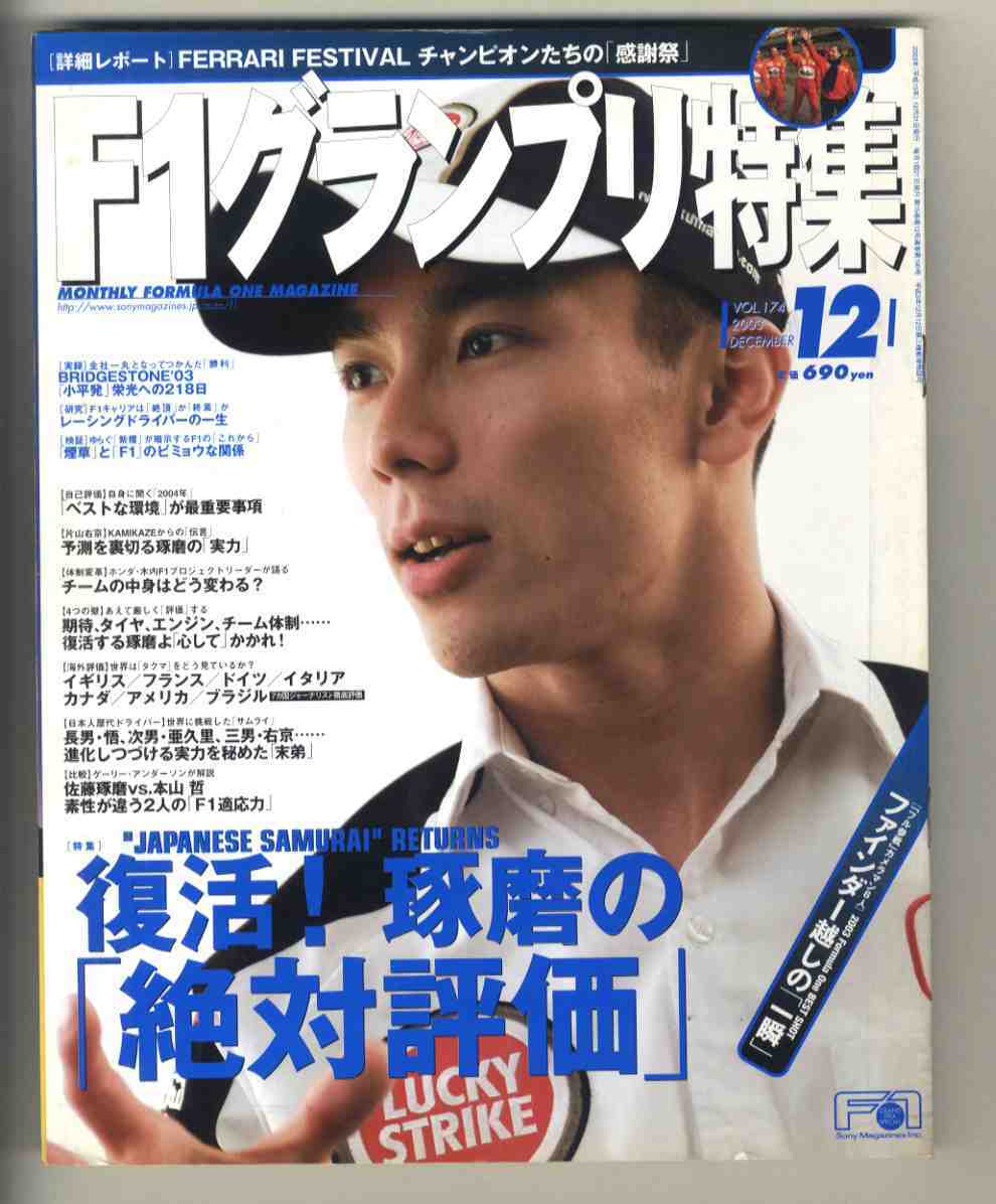 書名/記事: 03.12 F1グランプリ特集/特集=復活!琢磨の絶対評価、フェラーリフェスティバル、ブリヂストン栄光への218日、研究 レーシングドライバーの一生、煙草とF1のビミョウな関係、ホンダ・チームの中身はどう変わる、佐藤琢磨vs本山哲、…