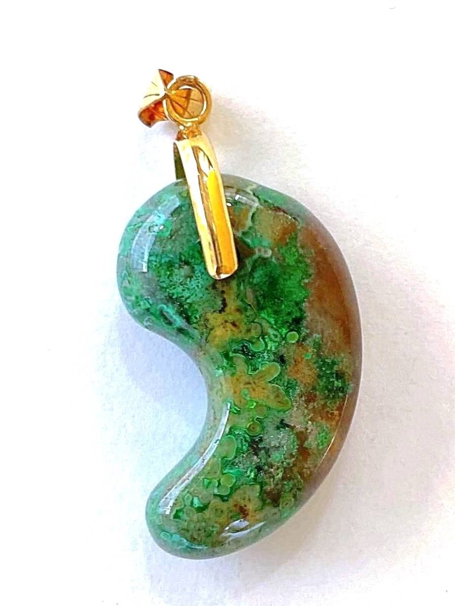 - 【即決】 K18 ペンダントトップ 勾玉 天然石 御守 パワーストーン 緑石 グリーン 4.3g