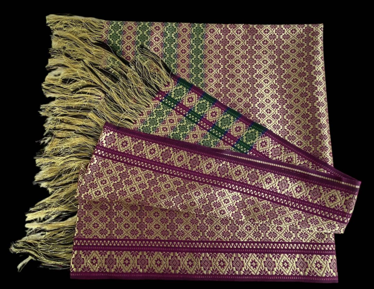 - ★未使用★テーブルクロス フリンジ付き ゴールド グリーン パープル 縦約95cm 横約190cm 現状品★710★ef669