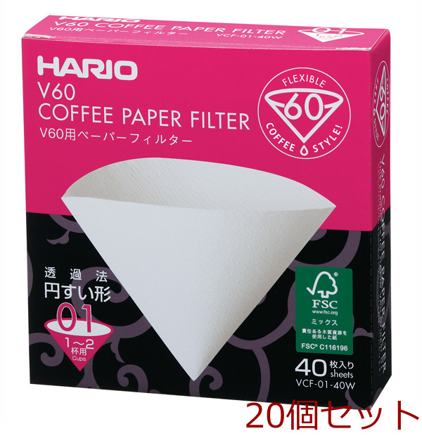 - V60用ペーパーフィルター01W1~2杯用40枚入 20セット