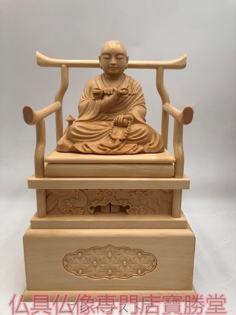 > 【寶勝堂】木彫りの仏像 弘法大師(祖師高僧) 柘植製 (高さ23cm×巾15.5cm)【木製仏像】真言宗の開祖・空海 (原木)
