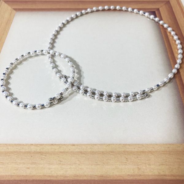 > 送料無料!! ネックレス ブレスレット セット CZダイヤ パール風 チョーカー アクセサリー エレガント パーティー◇A-0054