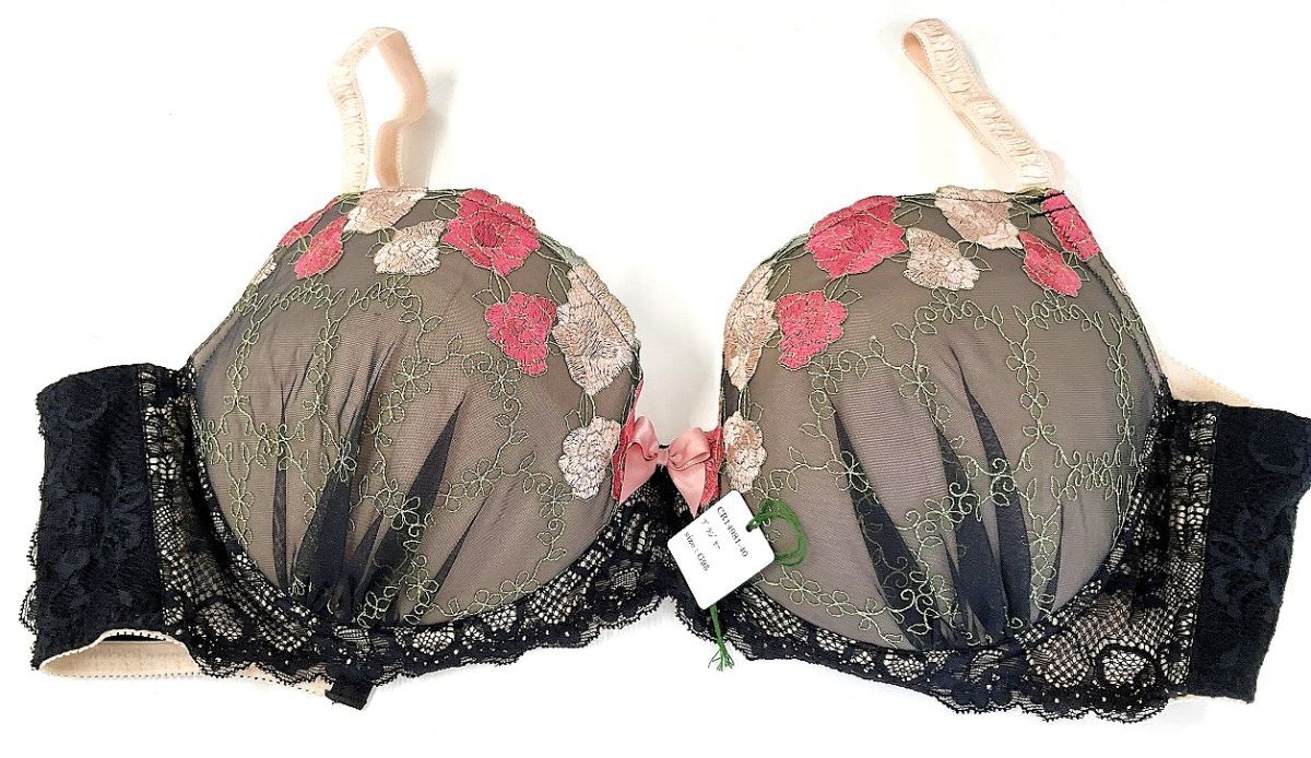 - CR14981-40 IB⑥【特価】新品 大きい ブラジャー G95 ベージュ 花柄 レース 脇高 シフォン 3/4カップ 華やか レディース