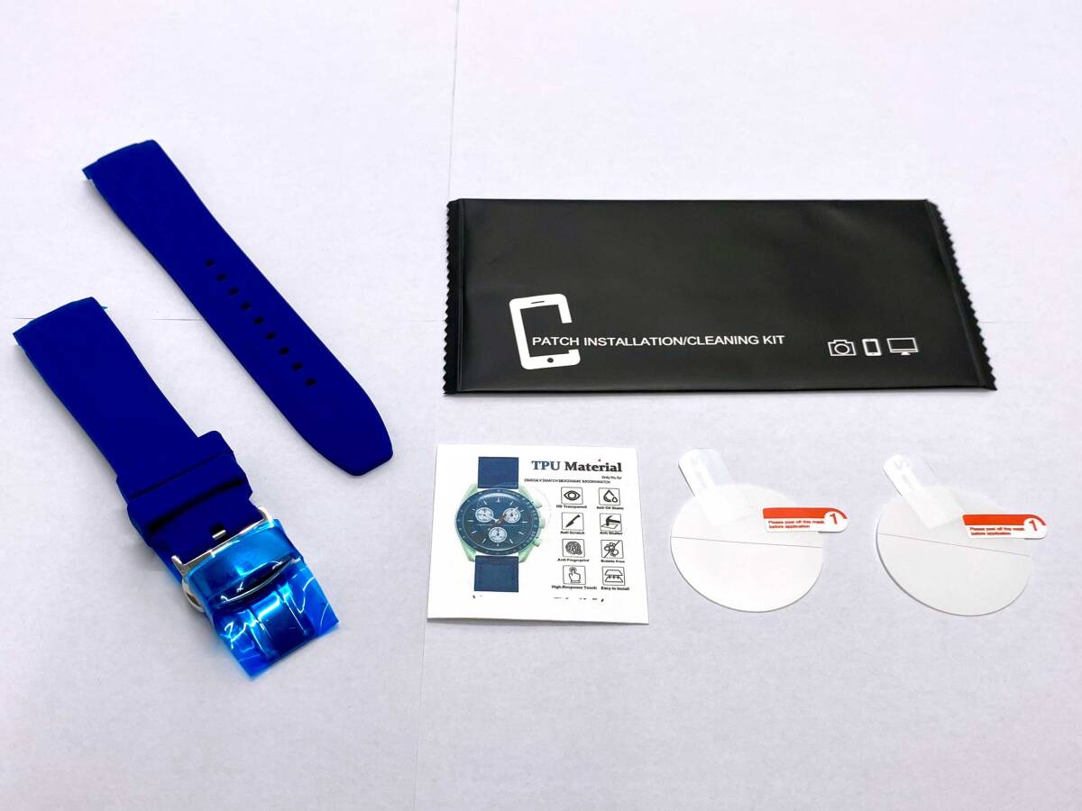 【未使用・修理部品】OMEGA X Swatch オメガ スウォッチ 対応 保護フィルム ラバーベルト セット おまけ-フィルム+1枚/バネ棒2本 / BY-1098