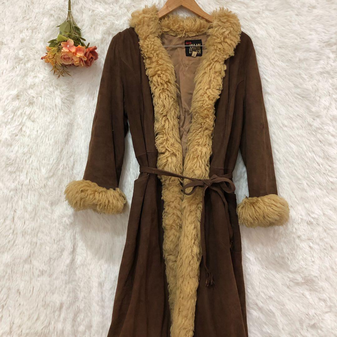 - ★ヴィレッジレザー★ ロング ムートン ファー コート 【F】 ガウン 茶