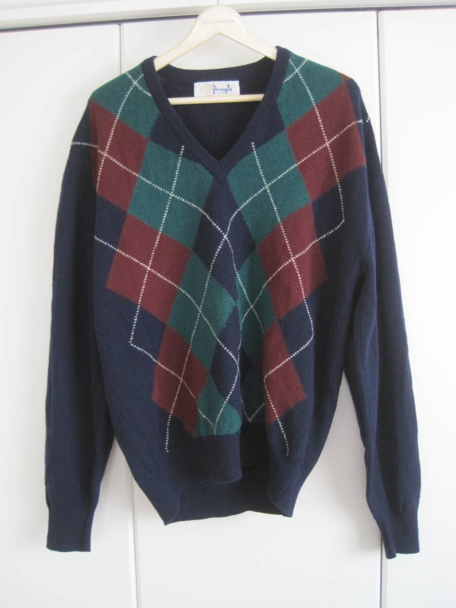 - オールド スコットランド製 Pringle プリングル Vネック アーガイルニット UK40サイズ