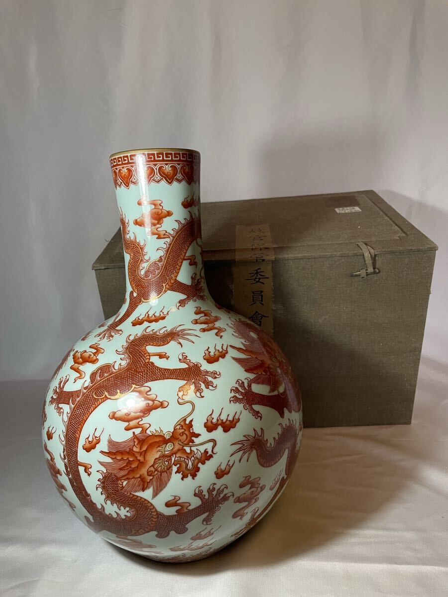 > 【故宮】紅彩五龍天球瓶 約H40cm 大清雍正年製 故宮保管委員会 内政部北平故宮保管委員会 重慶 金陵 花瓶 花器 壺 花入 陶器 花生 置物