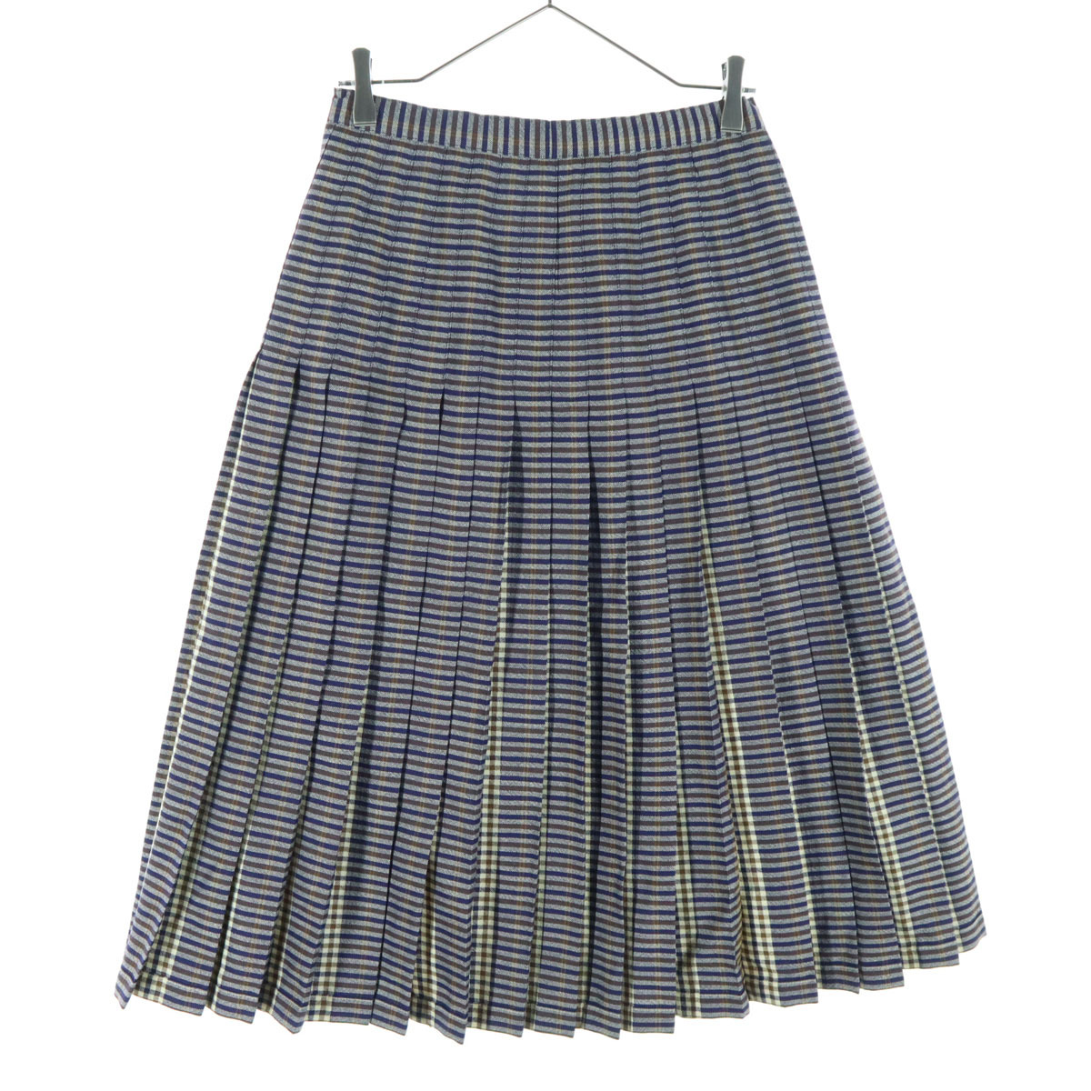 - Aquascutum アクアスキュータム チェック柄 ロング丈 プリーツスカート ブルー系 リバーシブル レディース
